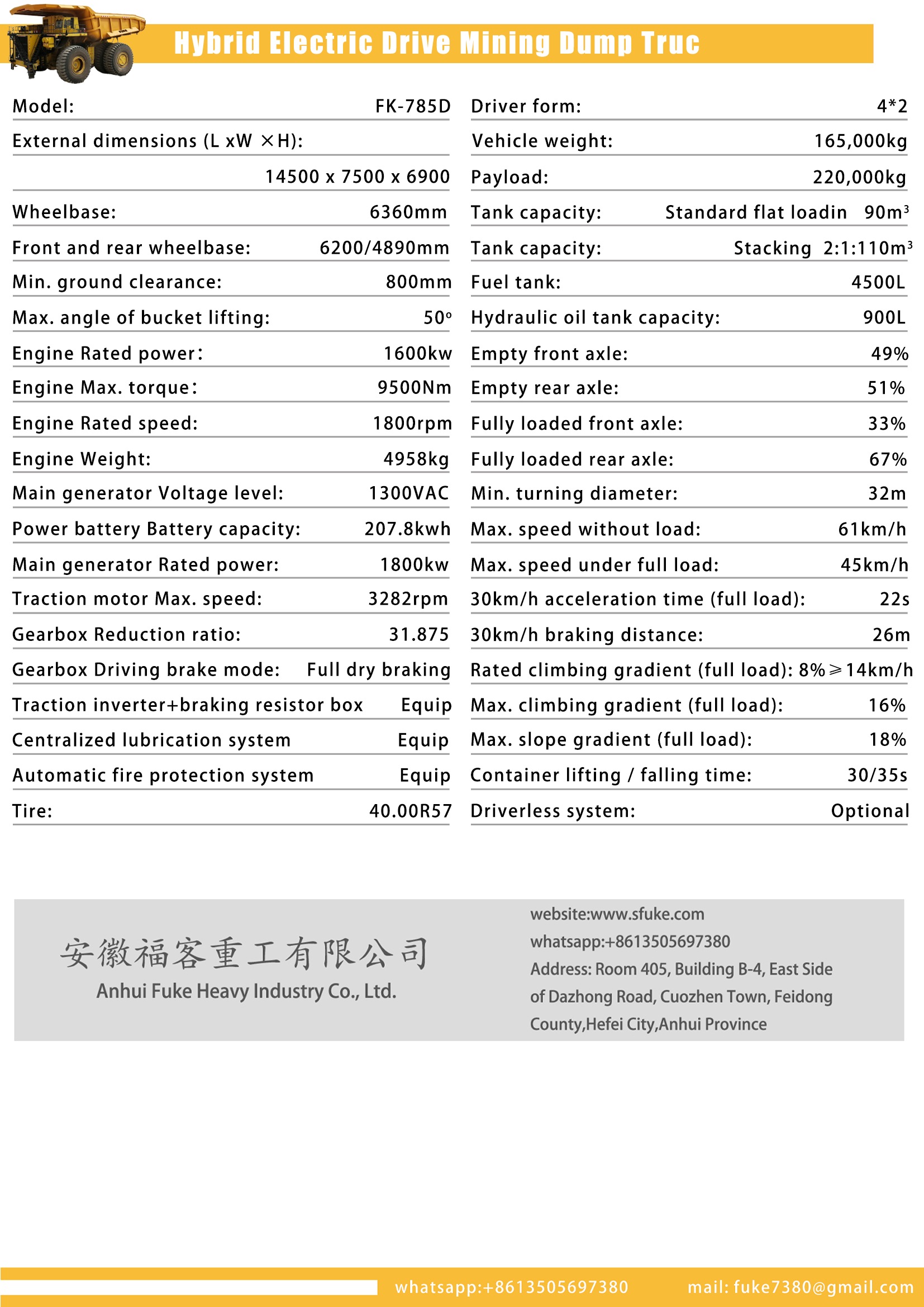 | Driver form | 4*2 |